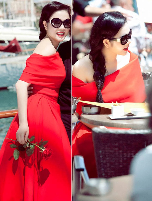 Lý Nhã Kỳ kiêu sa trong bộ váy đỏ rực rỡ.