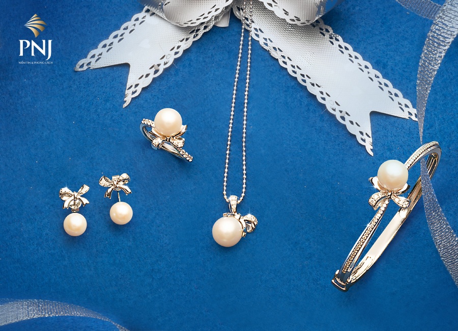 | Ngọc biển - hội tụ nét quý phái, thanh lịch vốn có của dòng trang sức kinh điển ngọc trai, nét tinh tế nằm ở họa tiết nơ mềm mại, thanh thoát được đính vào những viên ngọc trai. Trẻ trung, mượt mà nhưng vẫn toát lên sự kiêu sa, lộng lẫy, bộ trang sức là món quà tặng đáng yêu dành cho phái đẹp trong mùa Giáng sinh này |