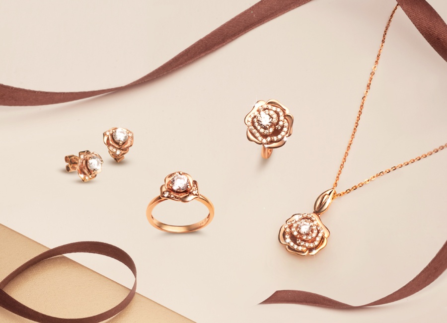 | Hoa hồng - bộ trang sức lấy cảm hứng từ dáng vẻ kiêu sa, ngọt ngào của hoa hồng hòa quyện với phong cách thiết kế tinh tế để tôn vinh vẻ đẹp, nét quyến rũ riêng, ẩn chứa thông điệp ngợi ca tâm hồn tươi trẻ, luôn tỏa ngát hương của người phụ nữ. |