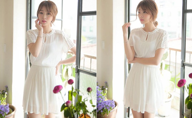 | 2. Đầm kết hợp giữa áo và chân váy. Bằng việc nhấn nhá 1 đường rút dây thun, hay đường may tinh tế ở giữa thân váy, những chiếc đầm mềm mại cho người đối diện cảm giác thật mới lạ, tựa như bạn đang mix giữa áo và chân váy. |