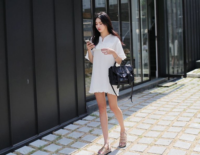 | Cũng có thể diện các thiết kế nguyên cây trắng, hoặc hồng, kết hợp giày slip-on, búp bê, giày lười, oxford… để thật trẻ trung, tươi sáng trong nắng hè. |