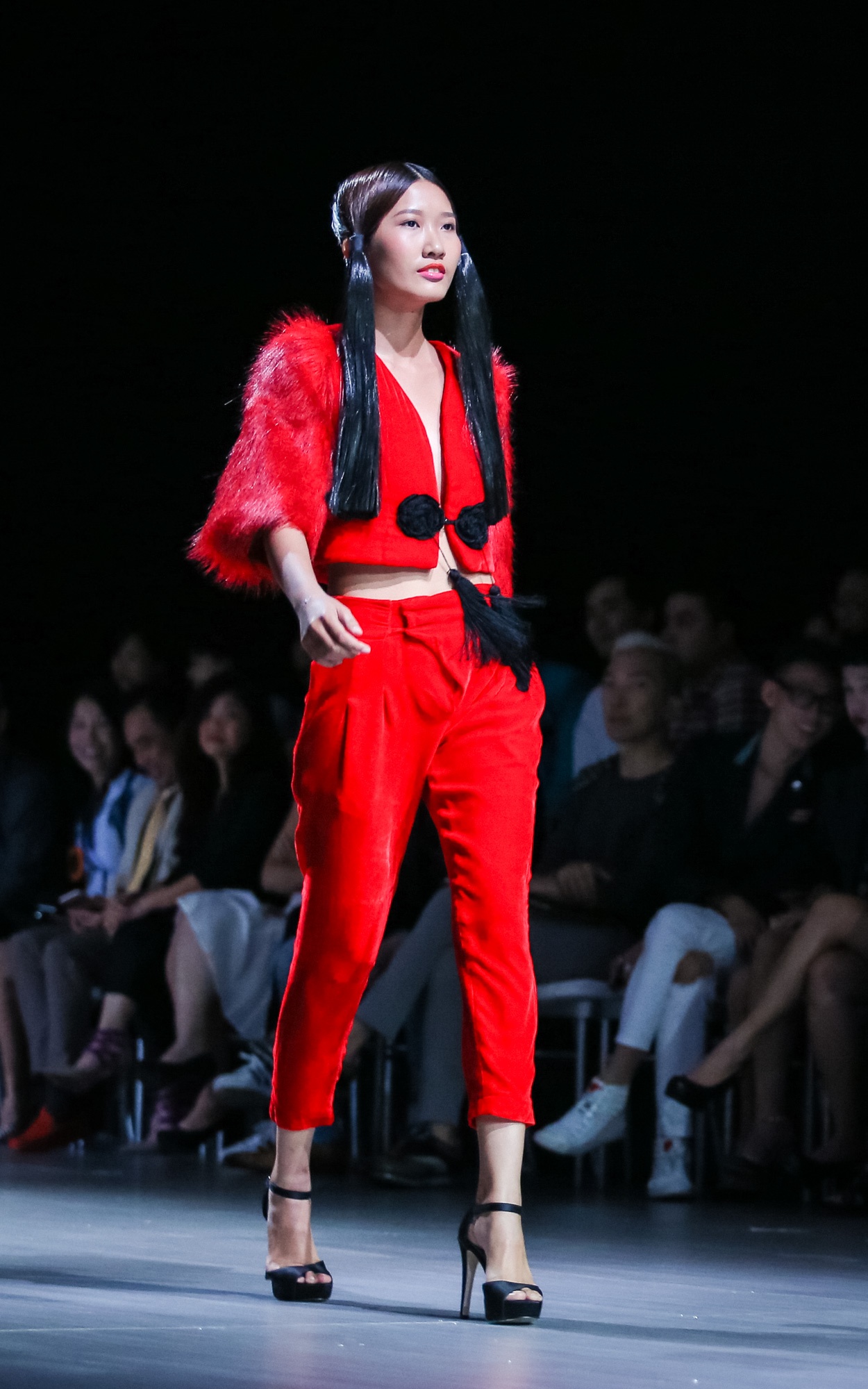 | Hoạ tiết tiệp màu vải: Điểm mới mẻ trong loạt xu hướng năm 2016 là trào lưu dùng hoạ tiết đồng màu cùng chất vải. Chi tiết này được nhà thiết kế Hà Linh Thư đưa vào bộ sưu tập mới. |