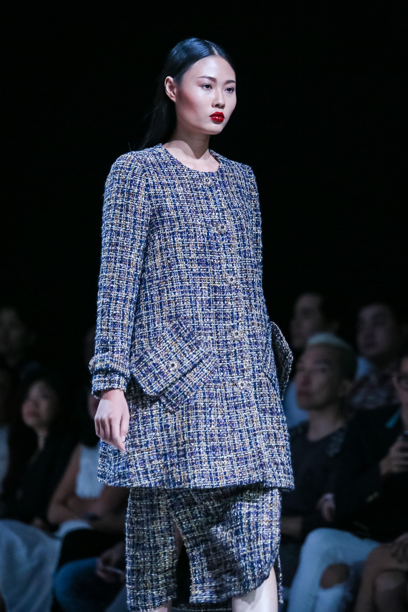 | Vải tweed: Đây cũng là một trong những nét đặc sắc của trào lưu mùa mới. Phom trang phục tiếp tục ảnh hưởng từ xu thế thời trang thập niên 1990. Mai Giang thanh lịch trong bộ cánh kín đáo. |