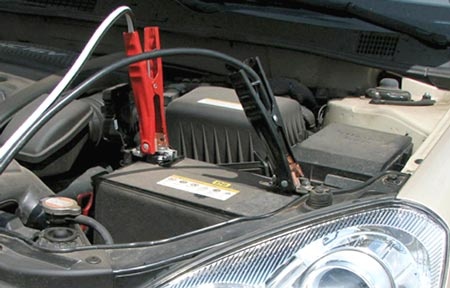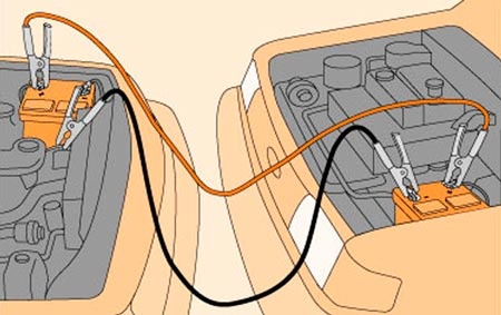 Nếu nhờ nguồn điện từ ắc quy của một xe khác thì cần lưu ý không để hai xe chạm vào nhau. Tắt hết các đèn và thiết bị điện không cần thiết. Khởi động xe cứu hộ và để nổ trong vài phút. Trong quá trình xe bạn đề nổ, đạp nhẹ bàn đạp ga xe cứu hộ cho động cơ quay với tốc độ khoảng 2.000 vòng/phút.