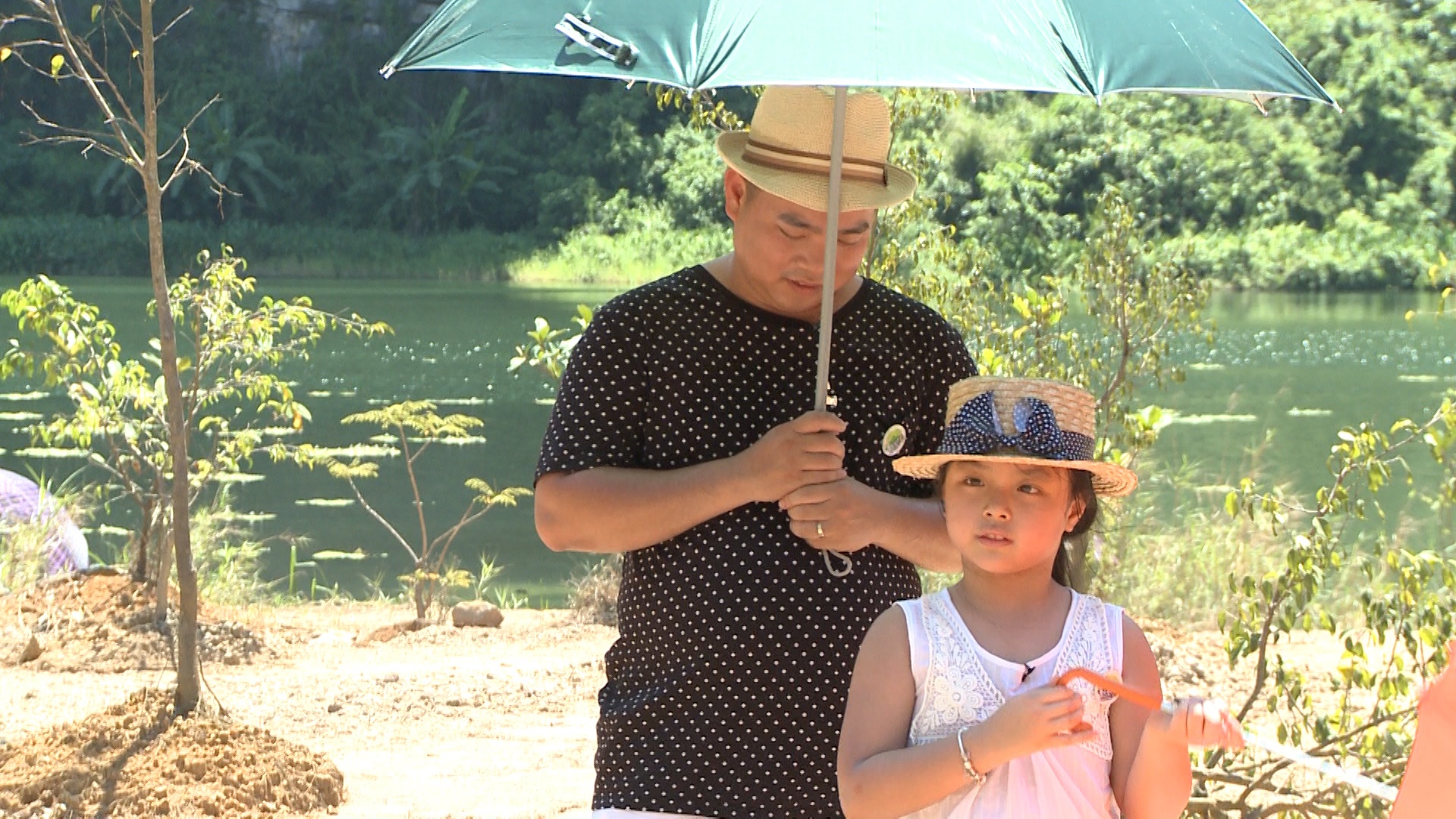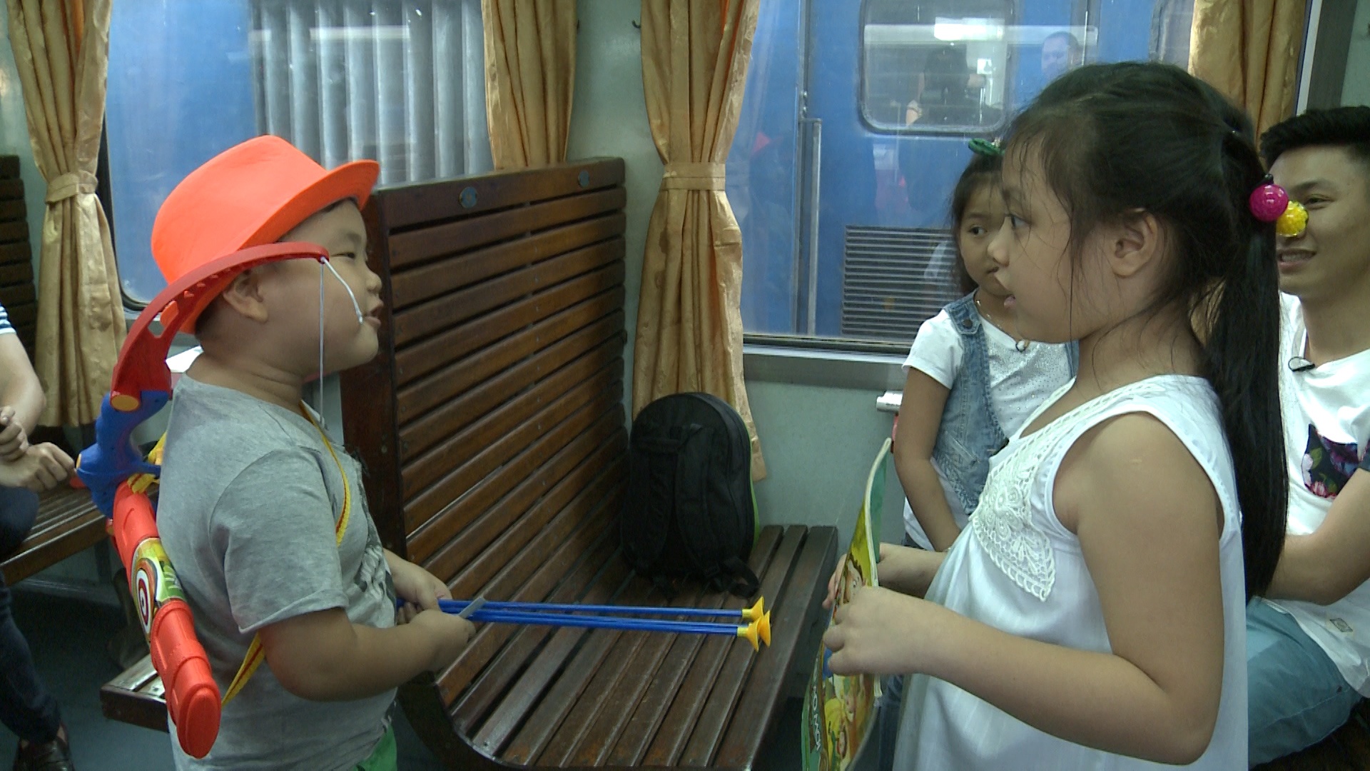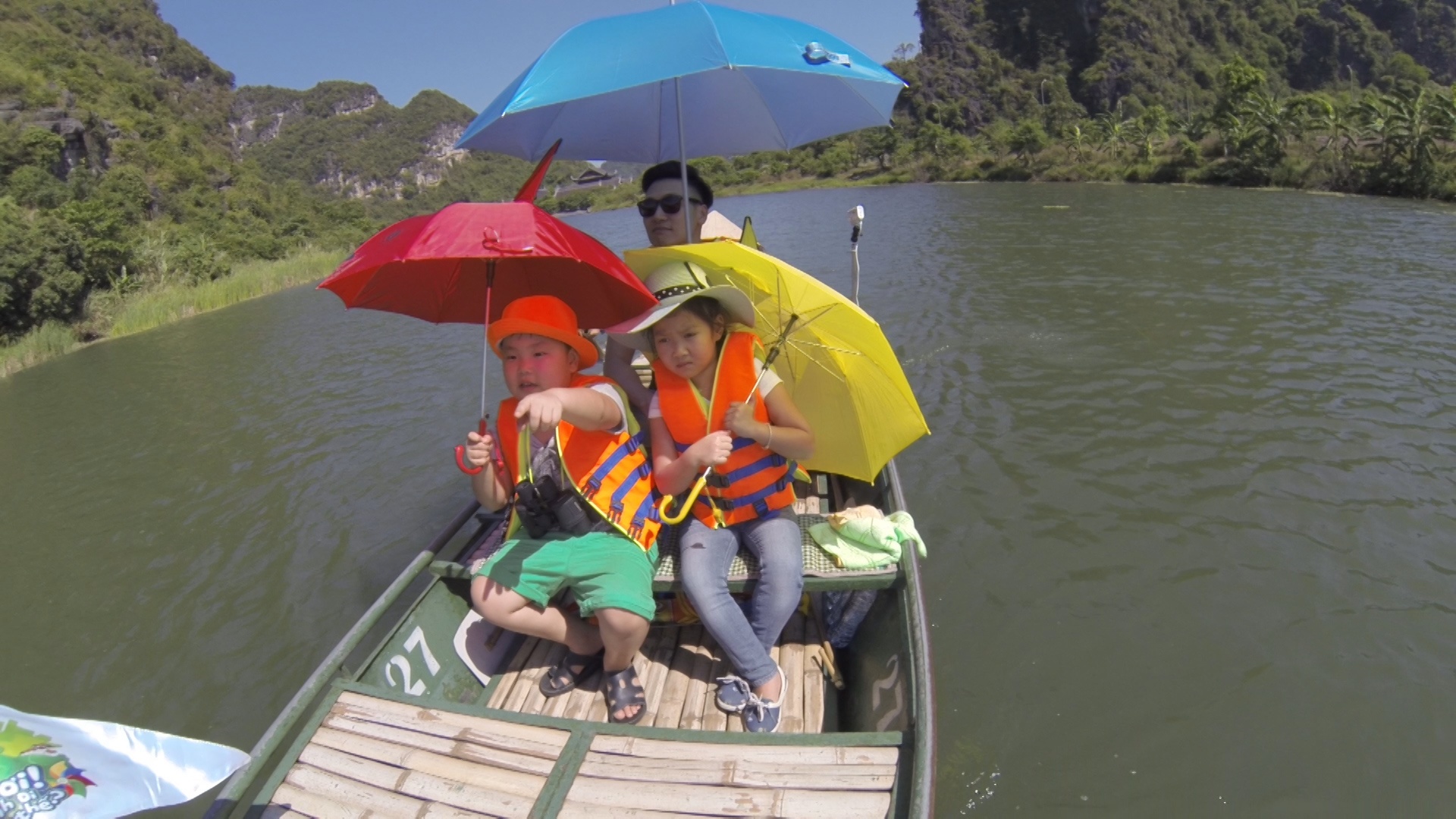 | Thử thách đầu tiên là Truy tìm kho báu trên sông. Các cặp bố con sẽ phải tự chèo thuyền để tìm kho báu được giấu bên dưới những quả bóng trên sông. |