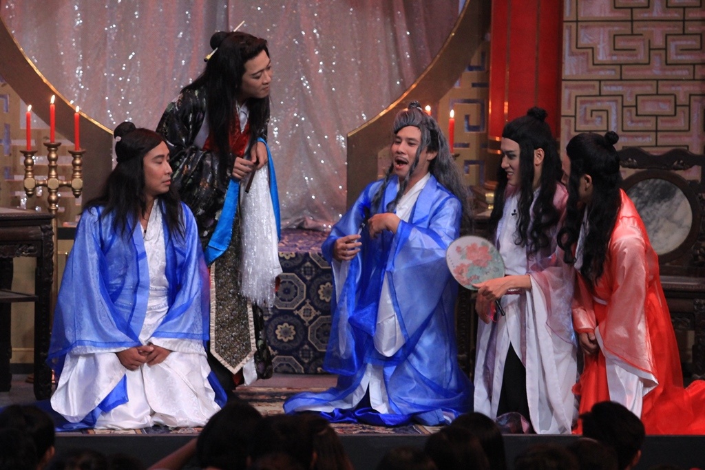 | MC Đình Hiếu "đụng độ" hai vị trưởng phòng Chí Tài, Trường Giang và bị hiểu lầm là thái giám cấp dưới của "Mười Khó". Anh thẳng thắn thừa nhận giả vờ làm thái giám để kề cận "cung nữ" Chí Tài, khiến "cô" có thai. |