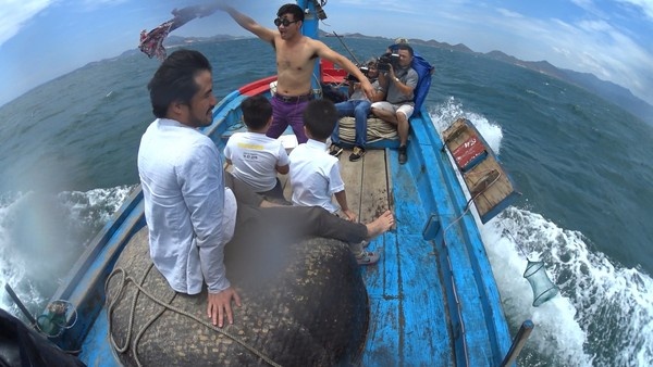 Trên tàu ra hoang đảo, giữa bé Bi và bố Xuân Bắc xảy ra một tranh cãi nhỏ. Cậu bé 5 tuổi khẳng định chắc nịch, sóng ở sông to hơn sóng ở biển trong khi danh hài có ý kiến ngược lại.