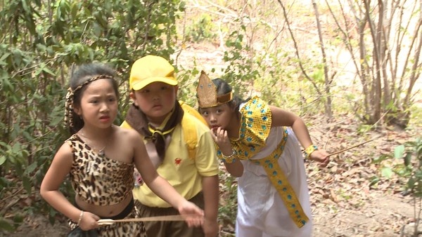 Gương mặt lo lắng và đầy sợ hãi của Chíp, Bi và Suti trong thử thách đi lấy nước.