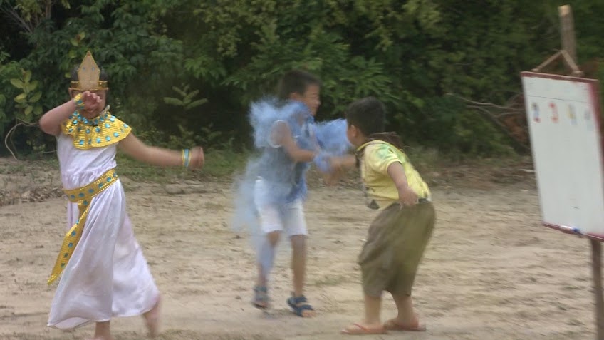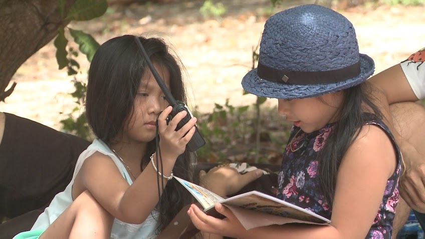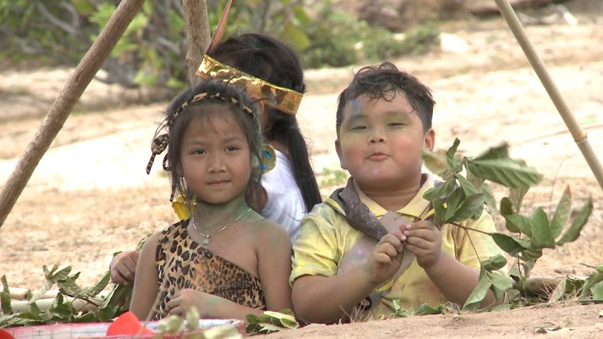 Khoảnh khắc vui vẻ của các bé khi tham gia trò chơi trên đảo hoang.