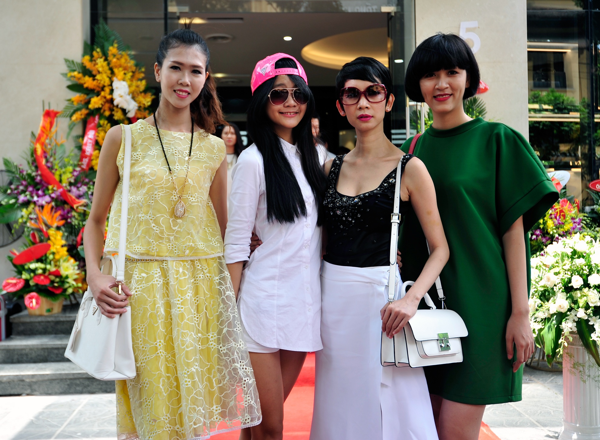 | Mẫn Nhy được Xuân Lan dẫn ra giới thiệu với đồng nghiệp Thúy Hằng và khách mời của buổi khai trương. |