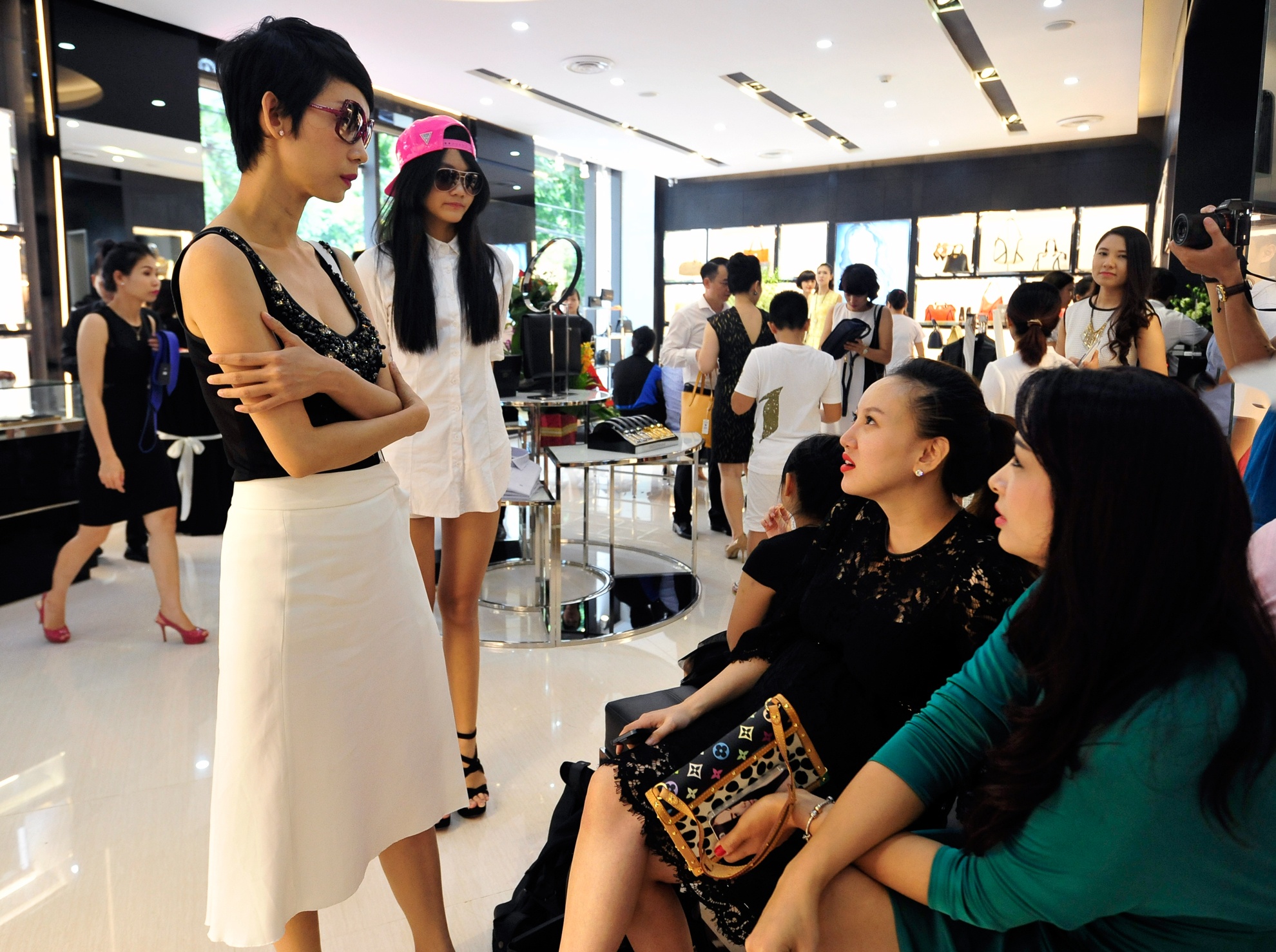| Tuy di chuyển với chặng bay dài và ngay sau đó đi ô tô về trung tâm thành phố nhưng siêu mẫu Xuân Lan vẫn tỏ ra khá tươi tắn khi tham dự buổi lễ khai trương. |
