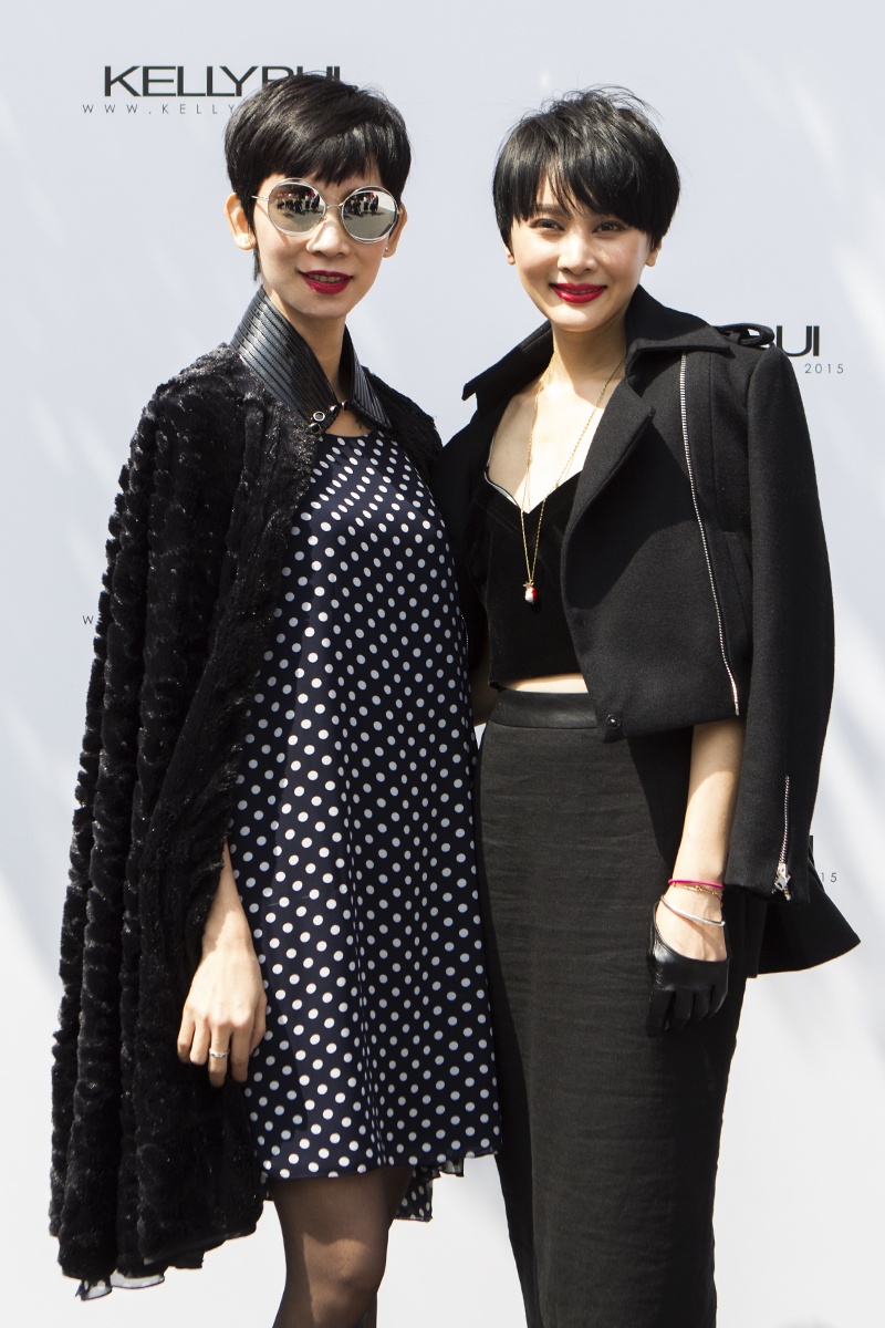 | Chiều 9/4, show diễn của Kelly Bùi đã diễn ra trong khuôn khổ Tuần lễ thời trang Thượng Hải thu đông. Góp mặt ở thảm đỏ sự kiện có nữ diễn viên Ngô Hiểu Mẫn - người từng góp mặt trong Đại chiến Xích Bích và nhiều bộ phim truyền hình, điện ảnh Trung Quốc. Cô tạo dáng bên cựu siêu mẫu Việt. |