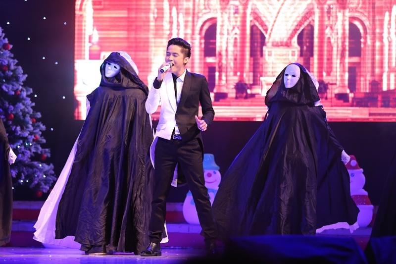 | Minh Sang tự tin đem Phantom of the opera trình làng với khán giả sân khấu 126. Anh gây ấn tượng khi cùng lúc hát cả giọng nam và nữ của ca khúc kinh điển này. Gương mặt sáng và ngoại hình đẹp cũng là yếu tố giúp Minh Sang được chú ý trên sân khấu. |