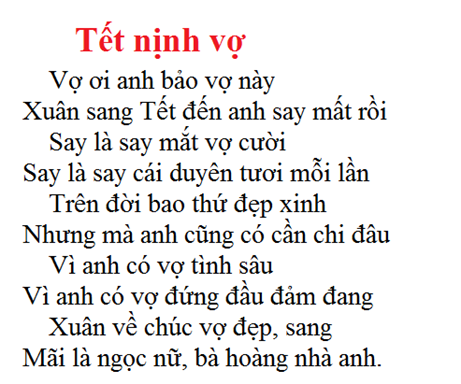 Chỉ mới xuất hiện trên mạng cách đây chưa đầy một ngày nhưng bài thơ Tết nịnh vợ đang được lan truyền nhanh chóng trên mạng và khiến cư dân mạng thích thú.