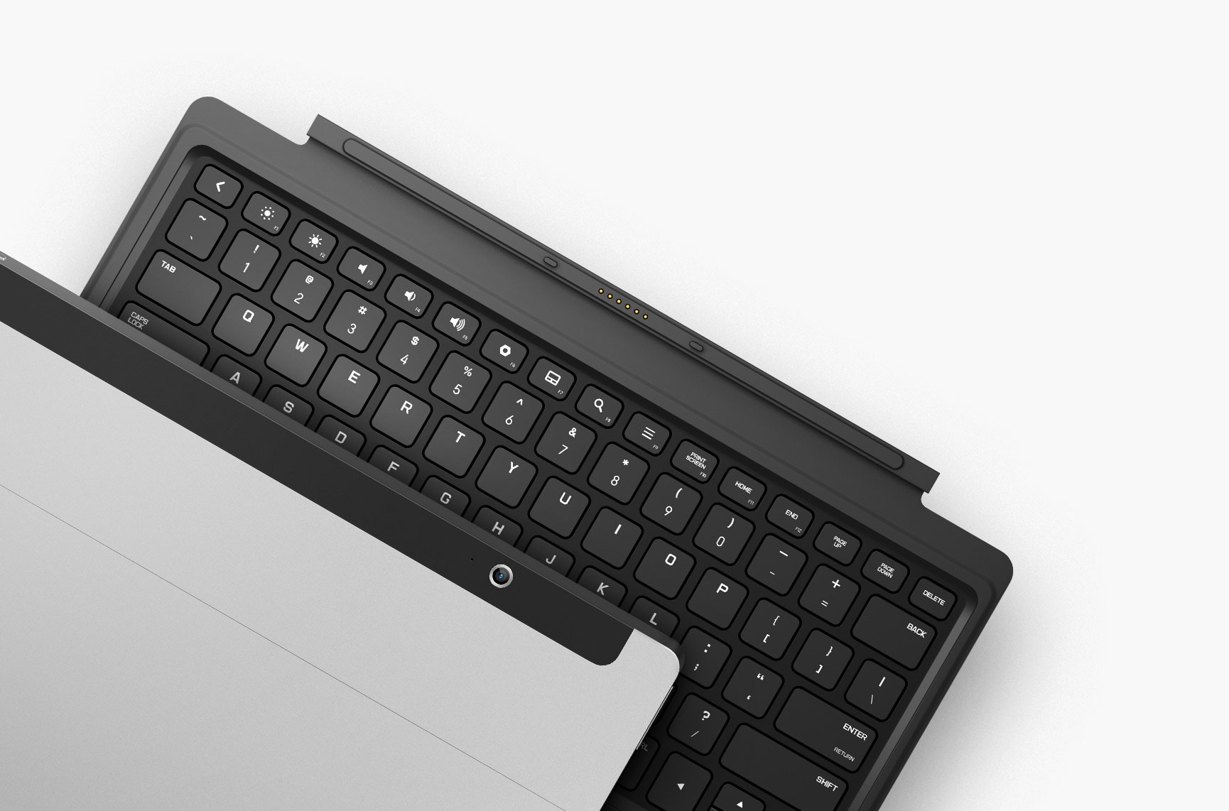 | Bàn phím rời là phụ kiện được đính kèm theo máy, cấu trúc này hoàn toàn giống Surface Pro. |
