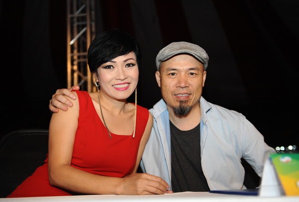 | Bộ đôi giám khảo của chương trình, nhạc Huy Tuấn và ca sĩ Phương Thanh trước giờ lên sóng. |