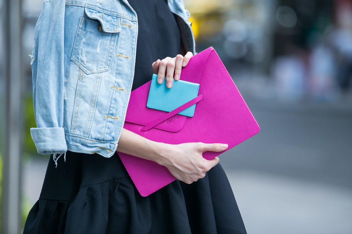 | Màu hồng lumineux của túi xách là điểm nhấn nổi bật cho set đồ ra phố. |