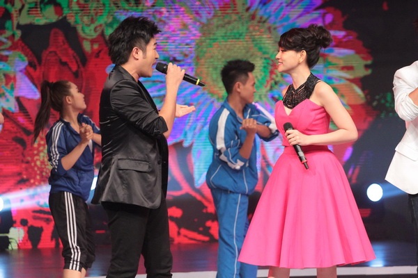 | Đây là lần đầu tiên quán quân Vietnam Idol và Bạch Phúc Nguyên - anh chàng từng làm mưa làm gió tại Đồ Rê Mí và The Voice Kids - cùng đứng trên một sân khấu. Tuy nhiên, cả hai đã khéo léo kết hợp để hâm nóng bầu không khí của bữa tiệc âm nhạc mừng sinh nhật ĐTH Việt Nam. |