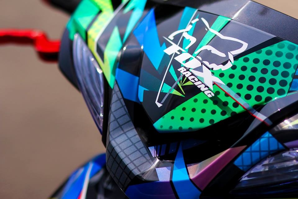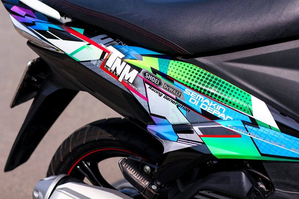 Vốn ưa chuộng sự kết hợp của những màu sắc nổi bật cùng họa tiết hình tia chớp nên đã chủ xe tạo điểm nhấn bằng các logo, họa tiết đặc biệt. |