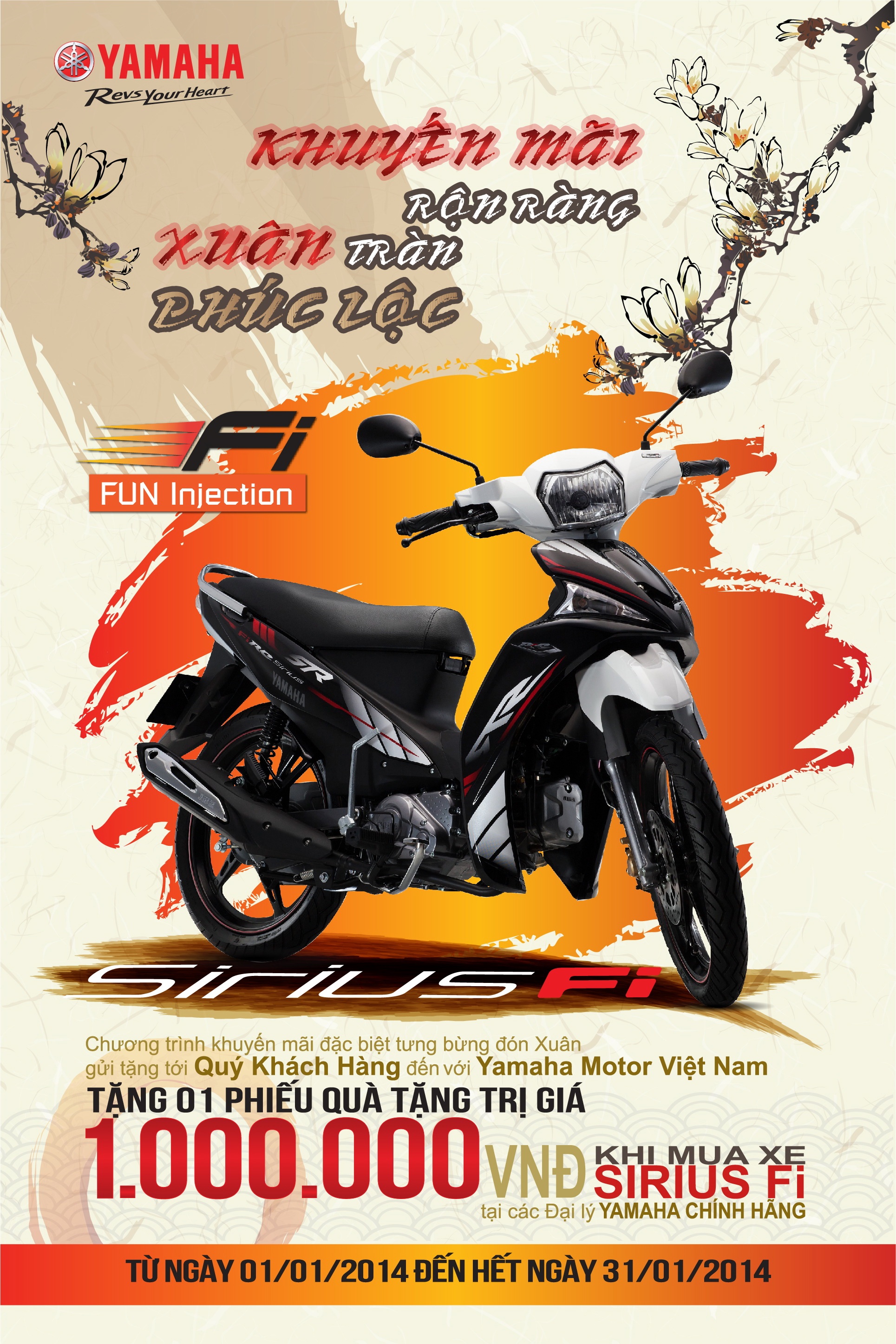 Chương trình Khuyến mãi rộn ràng, xuân tràn phúc lộc sẽ kéo dài từ ngày 1/1/2014 đến hết ngày 31/1/2014, nghĩa là trong suốt dịp lễ Tết nguyên đán. Theo đó, trong thời gian khuyến mại, tất cả khách hàng mua xe Sirius Fi do Yamaha Việt Nam sản xuất tại các đại lý Yamaha chính hãng trên toàn quốc, sẽ được tặng ngay một phiếu quà tặng trị giá lên đến 1 triệu đồng (đã bao gồm thuế GTGT).