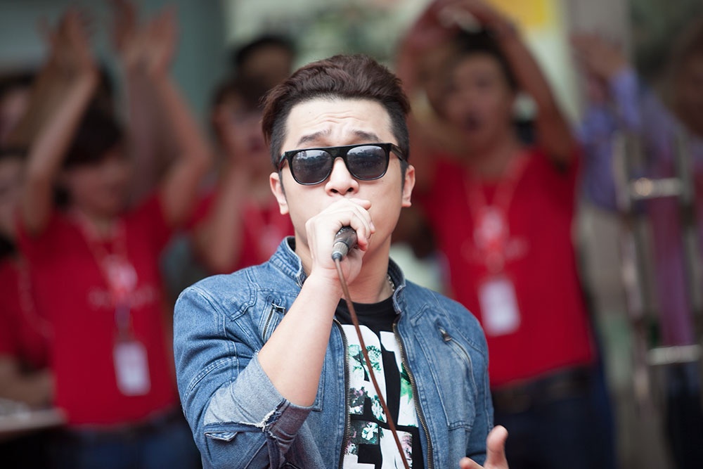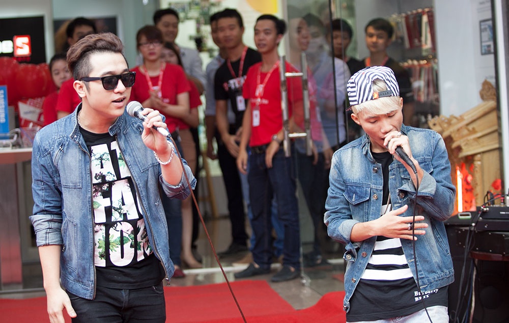 | Anh chàng tỏ ra khá tươi tắn và thoải mái. Dù chỉ khách mời trong sự kiện khai trương nhưng khi nhận được nhiều lời đề nghị từ khán giả, Yanbi vẫn hào hứng rủ cậu bạn thân cùng thể hiện lại bản hit đình đám là Thu cuối. |