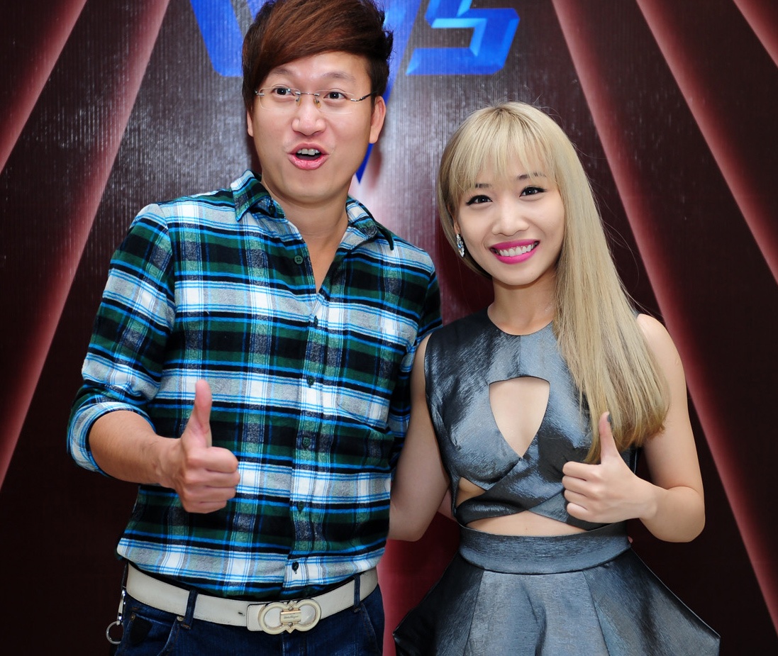 | Sỹ Luân và Hằng Bingboong nhí nhảnh trước ống kính. |