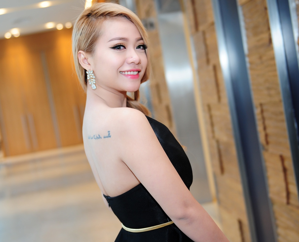 | Nữ ca sĩ Mi-A diện váy khoe hình xăm mới trên vai. Sau khi được chú ý tại Gương mặt thân quen 2014, cô tiếp tục tham gia Sao là Sao để chinh phục khán giả truyền hình. |