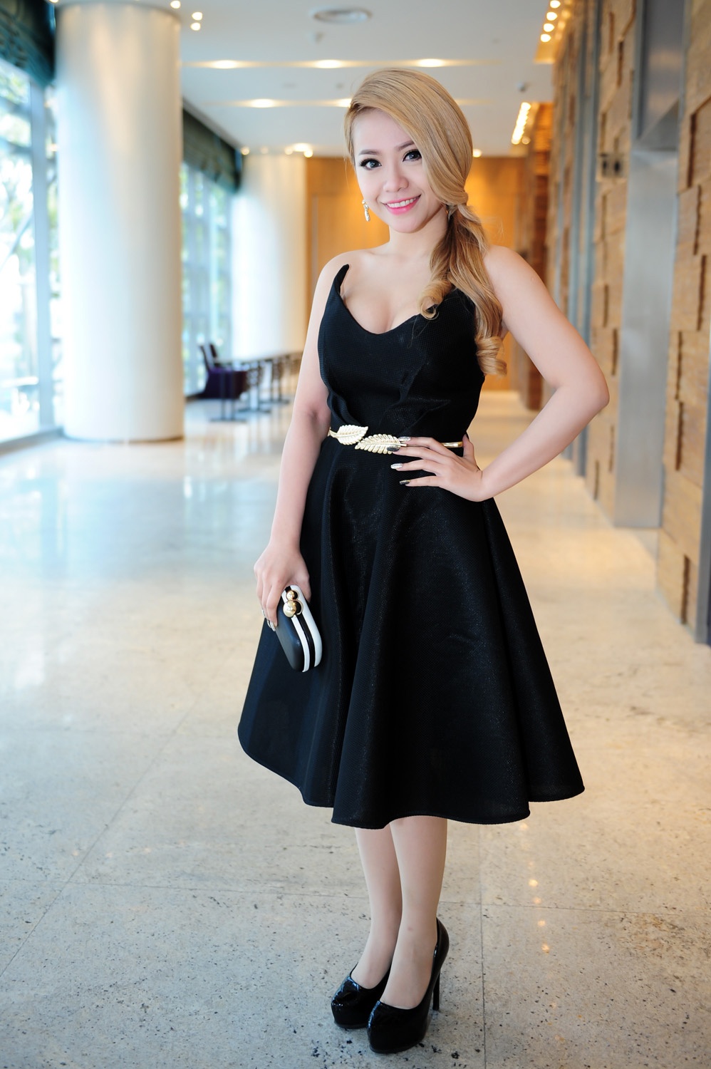 | Nữ ca sĩ Thu cuối diện váy cut out táo bạo dù không sở hữu thân hình nóng bỏng. Cô tham gia cuộc thi trong vai trò thí sinh. |