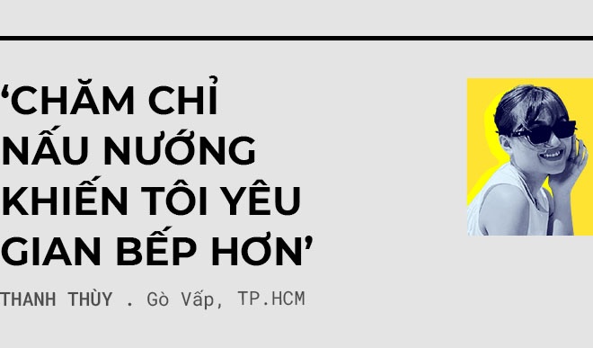 Không còn lựa chọn nào khác, tôi buộc phải xắn tay vào bếp. Từ ngày có thời gian đứng bếp, tôi học nhiều món cơm nhà, nấu chè, xôi, làm bánh, sinh tố… Lúc đầu thấy không ngon như ngoài tiệm, nhưng từ từ nêm nếm quen tay, tôi cảm thấy ưng ý những món do mình làm.