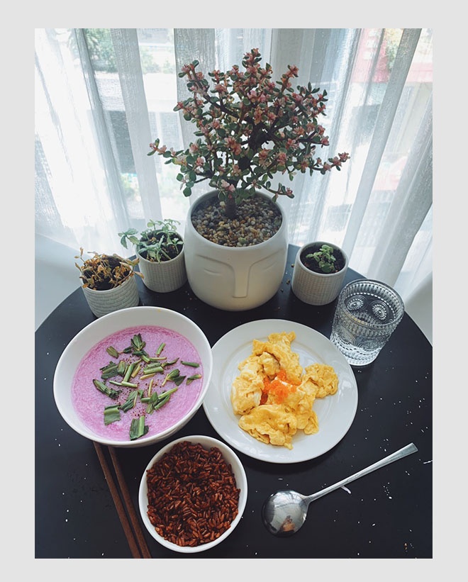 Ăn chay khiến tôi cảm thấy cơ thể luôn nhẹ nhàng, tinh thần thoải mái. Công đoạn nấu nướng cũng tối giản. Sau giãn cách, tôi sẽ duy trì những bữa ăn thanh đạm như thế này.