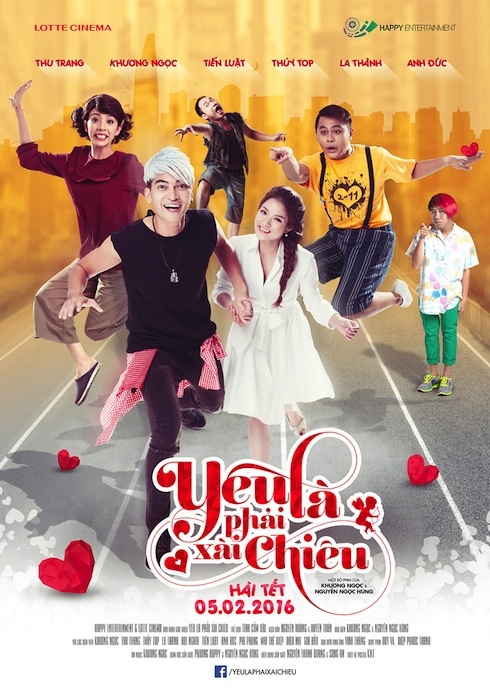 | Yêu là phải xài chiêu là một trong năm bộ phim Việt mới ra rạp nhân dịp Tết Nguyên đán 2016. Phim đánh dấu lần đầu tiên nam diễn viên Khương Ngọc ngồi trên ghế đạo diễn. Ảnh: Happy Entertainment |