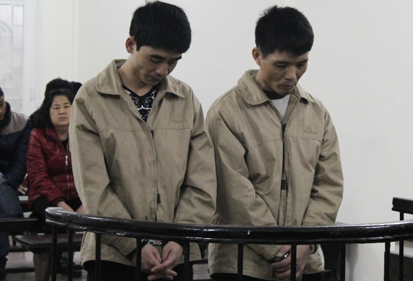 | Bị cáo Dũng (trái) và Long tại tòa sáng nay. Ảnh: Đỗ Mến. |