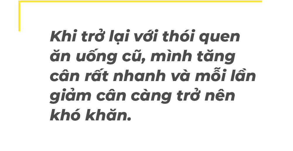 "Mình từng giảm cân thành công nhờ nhịn ăn tinh bột. Nhưng khi trở lại với thói quen ăn uống cũ, mình tăng cân rất nhanh và mỗi lần giảm cân sau đó càng trở nên khó khăn", Kỳ Anh (24 tuổi, 2 năm giảm cân không hiệu quả) chia sẻ.