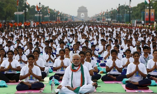 Ngày 21/6, Ấn Độ tổ chức đồng diễn Yoga trên cả nước nhằm kỷ niệm ngày Quốc tế Yoga lần thứ nhất, do Liên Hợp Quốc khởi xướng. Thủ tướng Narendra Modi cùng 35.000 người tập trung tại khu vực Rajpath, trên Đại lộ Nhà vua ở New Delhi, để thực hiện một bài tập yoga kéo dài khoảng 35 phút.