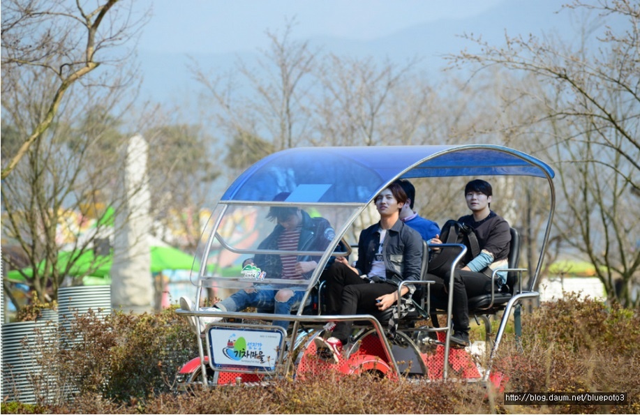 | Yunho và Changmin di chuyển đến công viên trên loại xe đặc biệt. Ảnh :daum |