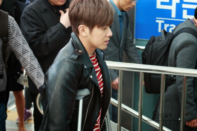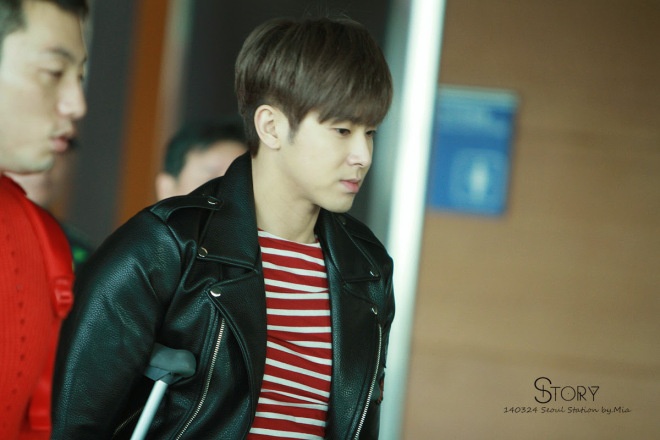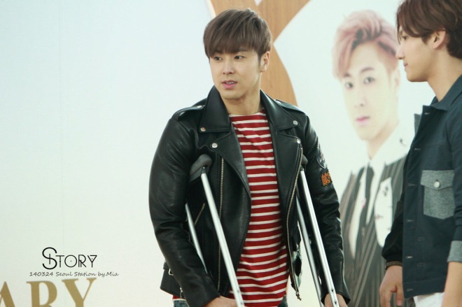 | Yunho dùng nạng do chấn thương chân chưa lành. Ảnh: story |