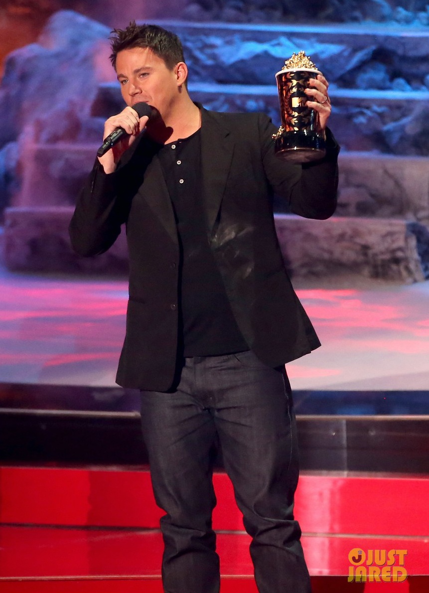 | Channing Tatum nhận giải Trailblazer trên sân khấu. Đây là giải thưởng được trao cho những diễn viên có danh sách vai diễn đa dạng và có hình ảnh "sạch, đẹp" trong mắt công chúng. |