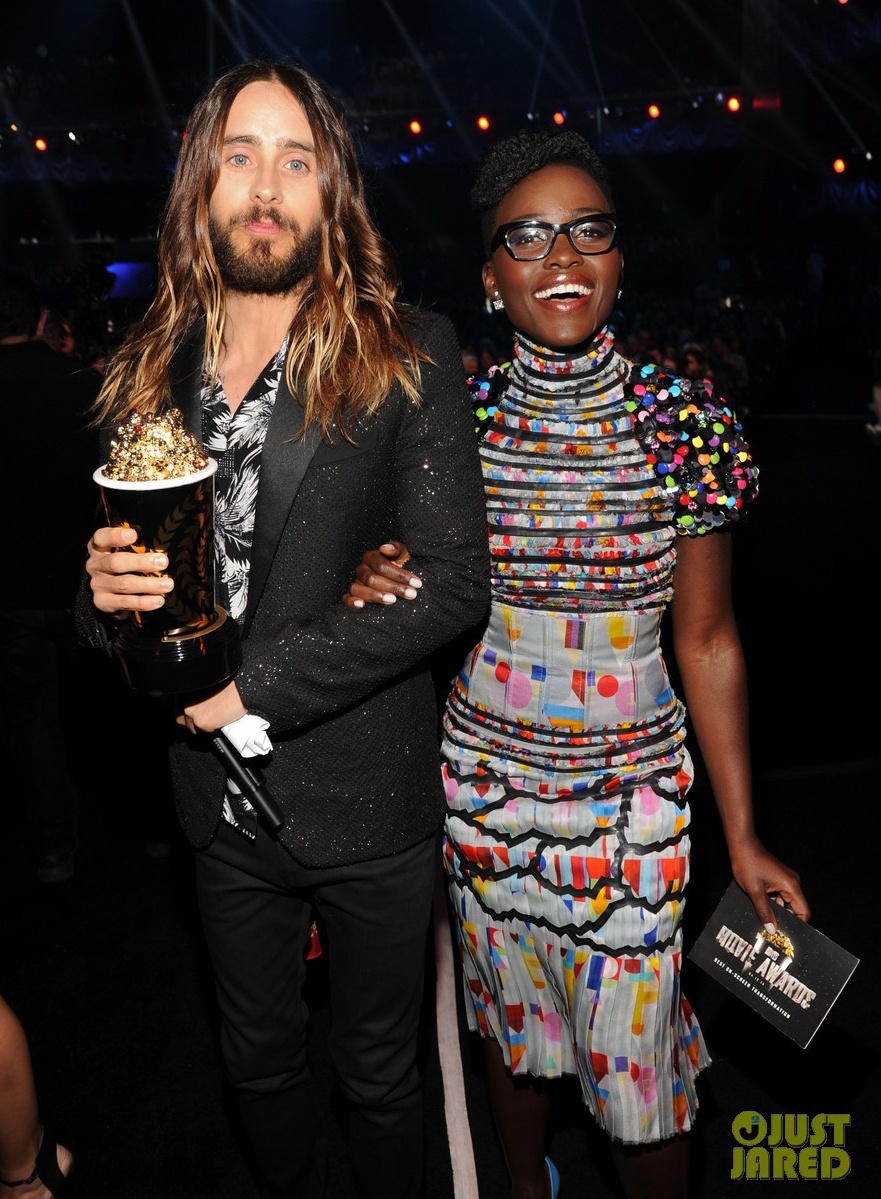 | Jared Leto nhận giải thưởng từ tay Lupita Nyong'o - người vừa giành giải Oscar ở hạng mục Nữ diễn viên phụ xuất sắc nhất hồi tháng 3. |