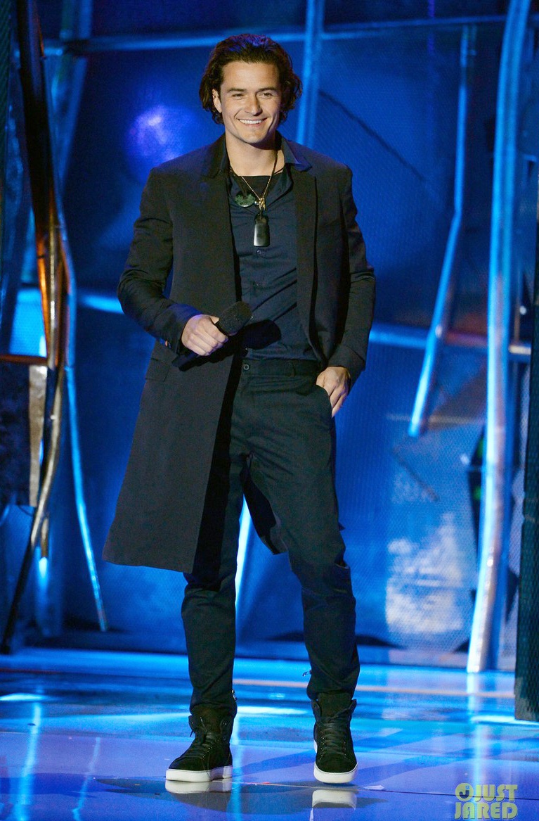 | Orlando Bloom điển trai trên sân khấu khi lên nhận giải Cảnh chiến đấu đẹp nhất. |