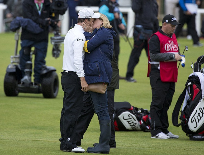 | Golf thủ số 12 thế giới đón nhận "món quà" chúc mừng từ cô vợ Kim. |